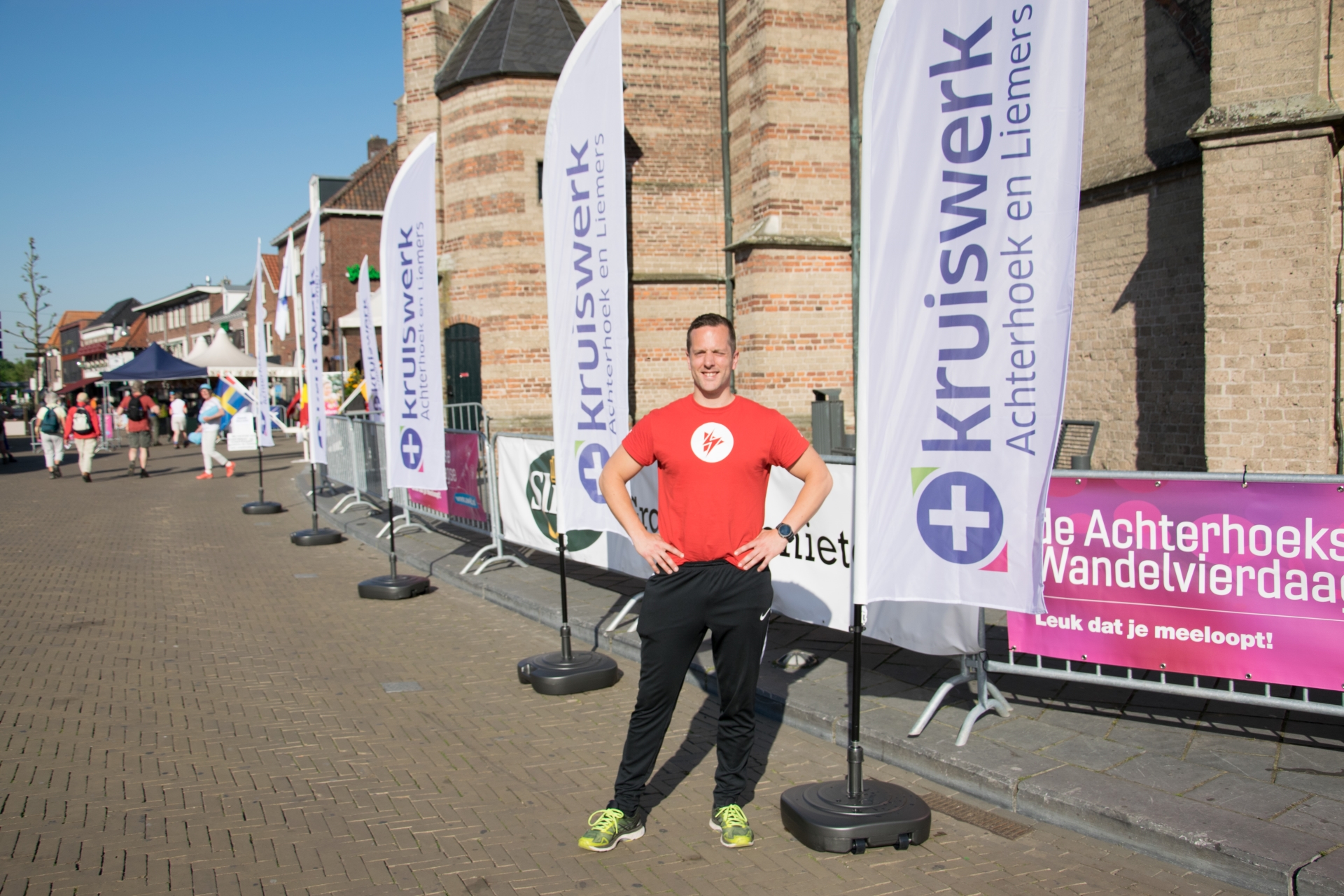“Onze Paul” staat tijdens de Wandelvierdaagse iedere ochtend op het Simonsplein om u even flink wakker te schudden. Elke spier in uw lichaam wordt warm met bewegingen op de opzwepende muziek. En dat samen met een heleboel anderen. Als dat geen energie geeft! Zo krijgt u nog meer zin om te wandelen. Óf om lekker naar uw werk te gaan, want iedereen kan meedoen. De Warming Ups beginnen voor ieder afstand een kwartier voor de vertrektijd.